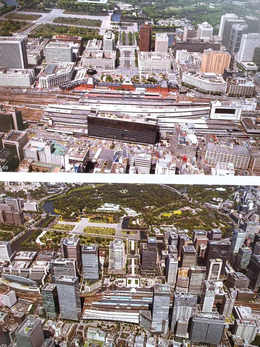 东京丸之内地区持续发展则是更具城市尺度影响力的第三代城市更新实例。三菱地所在该地区的开发建设已有从1890年到2019年3个阶段共130年的时间。从2020年开始,三菱地所实施新一轮面向国际大都市的“丸之内NEXT STAGE”宏大计划,以期通过努力加强革新创造与数字基础,推进能够提高个人生活质量、有助于发现并解决社会性问题的城市建设。以“丸之内ReDesign”为主题,力求实现“通过人与企业的交集孕育全新价值的舞台”的目标。为此,基于“再城市化”目标,三菱公司先后拆除早年前川国男设计的东京海上救援总部大楼,并聘请皮阿诺在该用地上设计了一座100 m高的新一代具备节能与环保性能的木结构写字楼;大丸地块上则拆除了当年的日本大楼等建筑,并由三菱地所、藤本壮介和永山佑子合作设计标准层达到100 m×100 m的超级摩天楼——“东京火炬”(Tokyo Torch),设计的目标是创造更多元、更生态、更宜人的城市公共空间(图23);体现高层建筑在建造技术、双碳绿色等方面的新的科技进阶,核心还是超大的标准层能够满足世界500强企业入驻的功能需求②。同时这一项目还将协助首都高速公路地下化工程在2040年完成建设(图24、图25)。